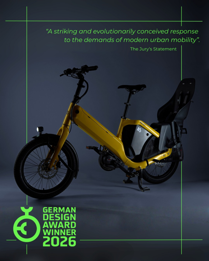 Bike43 heeft de prestigieuze German Design Award 2025 gewonnen in de categorie ‘Excellent Product Design’ voor hun Short & Mid longtail modellen. De jury prees het aanpasbare ontwerp, de duurzaamheid en de veiligheidsfuncties die meegroeien met het gezin.